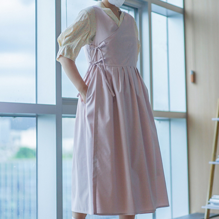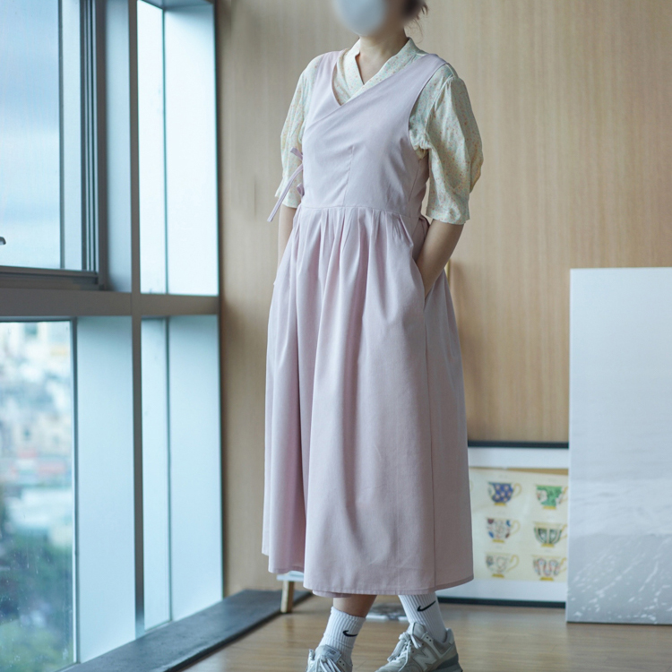 기존 철릭원피스 디자인에서 허리단을 없애고,