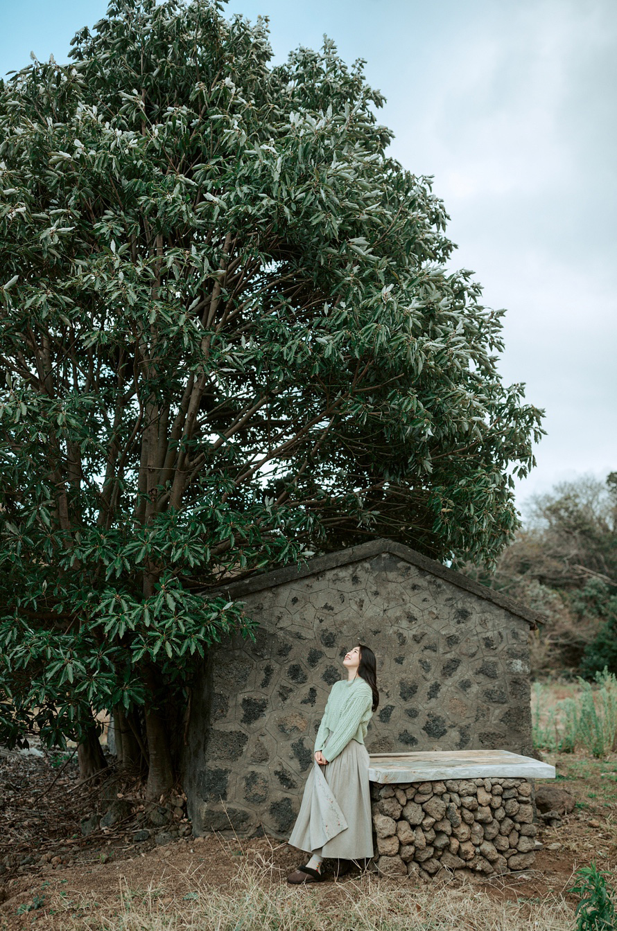 두르는 방향에 따라 줄기꽃 자수가 보이게, 안보이게 2가지 스타일 연출이 가능합니다.