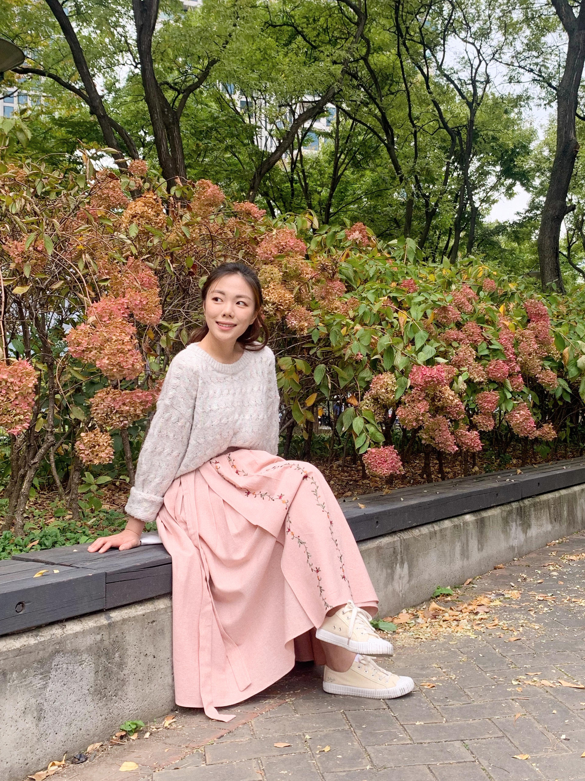 많은 분들이 사랑해주셨던 줄기꽃 자수 스커트가 2가지 컬러로 재출시 되었습니다.